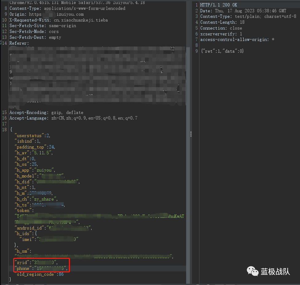 于是乎,我就黑盒测试了一下这款app,果然发现了一个接口可以通过用户id来枚举绑定的手机号,用手机号枚举用户id也可以。