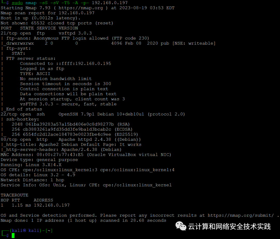 继续做端口扫描,sudo nmap -sS -sV -T5 -A -p- 192.168.0.197,