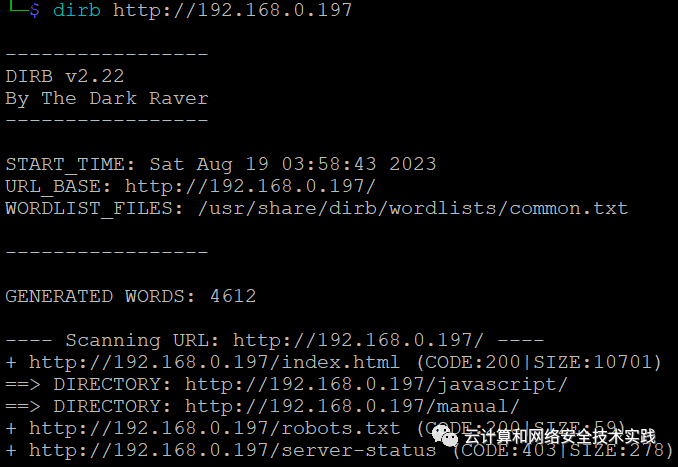 有web服务,做目录扫描,dirb http://192.168.0.197,