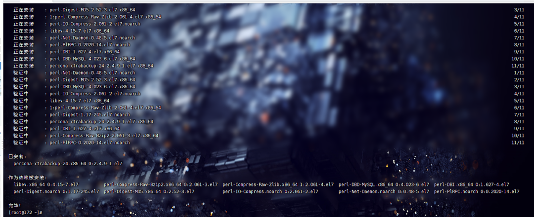 yum install -y percona-xtrabackup-24-2.4.9-1.el7.x86_64.rpm
