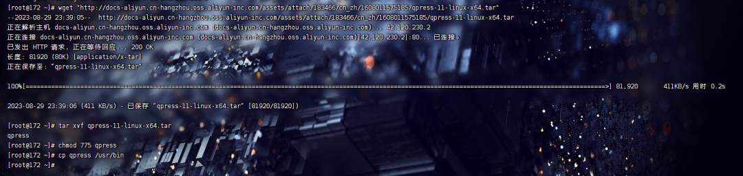 wget "http://docs-aliyun.cn-hangzhou.oss.aliyun-inc.com/assets/attach/183466/cn_zh/1608011575185/qpress-11-linux-x64.tar"