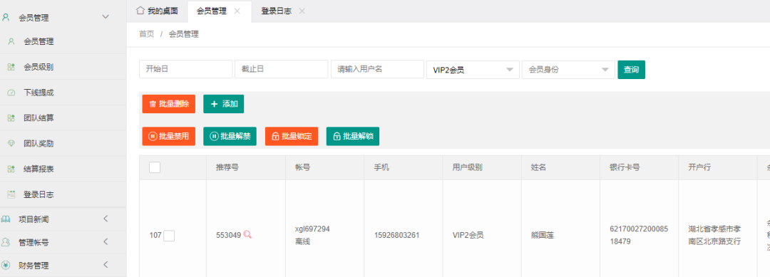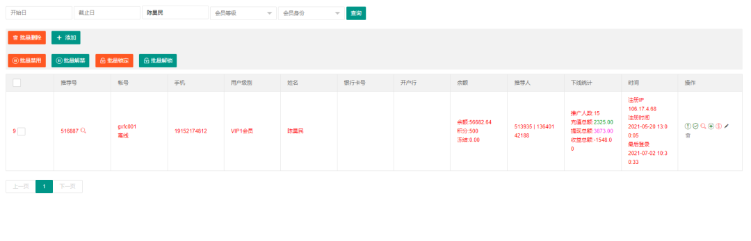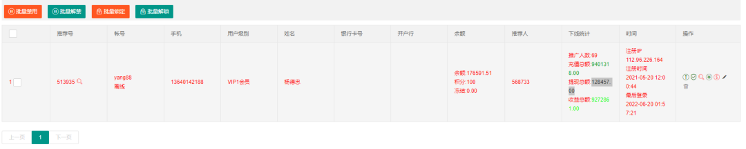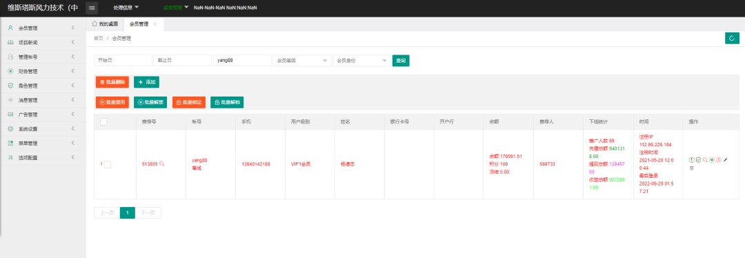 在会员管理里搜索yang88