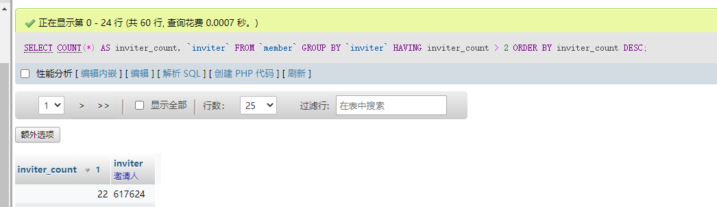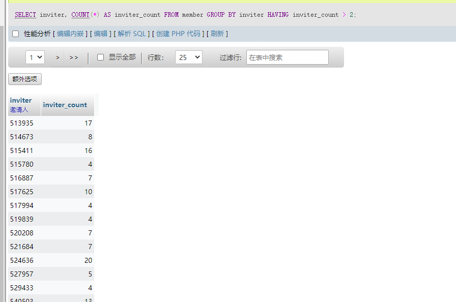 GROUP BY `inviter`