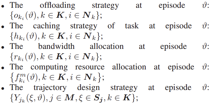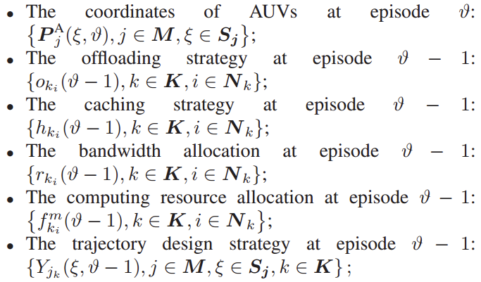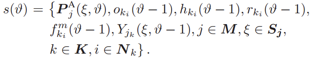 1)状态空间:在每个episode ϑ,状态s(ϑ)∈S包括以下部分: