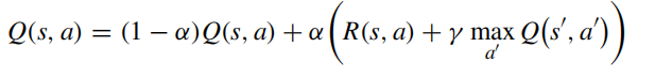 Q-learning算法包含Q函数对应于状态对和动作对。Q函数表示在状态S和动作a的情况下可以获得的长期奖励的估计。然后Q-learning算法使用Q函数选择长期奖励最大的最佳策略。Q函数的计算方法为: