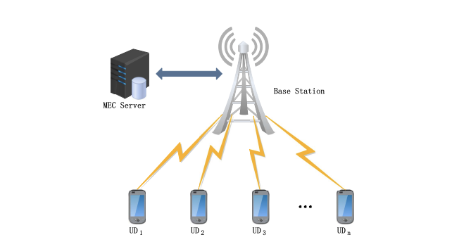 如图1所示,系统由一个基站,N个用户设备(UD)和一个与基站部署在一起的边缘计算服务器组成。UD可以感知工业4.0场景中的生产环境,每个UD有一个基于人工智能的计算密集型任务需要被计算。由于UD存在计算资源上的限制,因此可以将任务卸载至边缘服务器以辅助计算。本文假设任务的优先级相同,当任务同时卸载时,无线带宽资源将均匀分配给每个上传任务UD。
