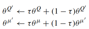 对于目标网络参数的更新,DDPG算法使用actor网络和critic网络的参数对目标网络进行软目标更新。软目标更新的方法为: