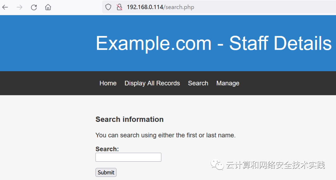 浏览器访问,http://192.168.0.114,在search.php页面发现输入点,