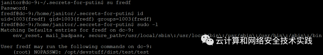 切换账户,su fredf,查看sudo权限,sudo -l,