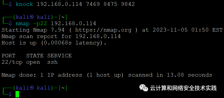 kali攻击机上安装敲门软件,sudo apt install knockd,