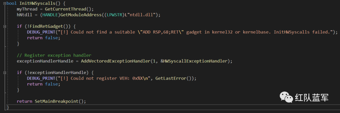 在使用 HWSyscalls 前,首先要使用 InitHWSyscalls 函数进行初始化。初始化包括以下几个内容: