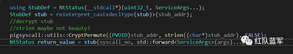 PIG-Syscall 对 FreshyCalls 项目中的 mini shellcode 进行了加密,使用 InternalCaller 调用时再进行解密: