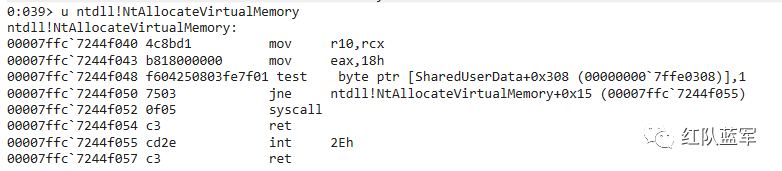为了规避这种检测,SysWhispers2 通过随机获取 ntdll 中 syscall 指令的地址,并跳转到该地址执行 syscall 指令,从而使 syscall 指令的调用方变成了 ntdll: