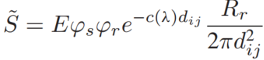本文评估了轨迹、距离和水浊度对信噪比的影响,然后综合考虑距离和信噪比选择合适的传输均值和传输方式,以实现上述最优目标的最大化。由于磁通信的不稳定性,我们采用声光通信作为我们的替代传输手段。发送方i和接收方j之间的距离按位置计算,记为d_i,j。水浊度严重影响水下光通信介质的质量,用消光系数c(λ)来评价影响光通信的信噪比。c(λ)定义为吸收系数a(λ)和散射系数b(λ)的加权和。