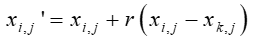 由于蜜源更新方式的较大随机性,ABC存在搜索范围不够全面、易陷入局部最优的缺点。因此,本文做出了相应的改进,提出了FD-ABC-AF,避免蜜源更新的幅度太大或太小。具体来说,为雇佣蜂和跟随蜂提出了两种不同的蜜源更新方式。将雇佣蜂产生新蜜源的方式改为:
