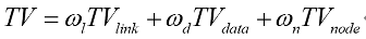 其中ωl+ωd+ωn=1,TVlink,TVdata,TVnode分别为链路信任值、数据信任值和节点信任值。