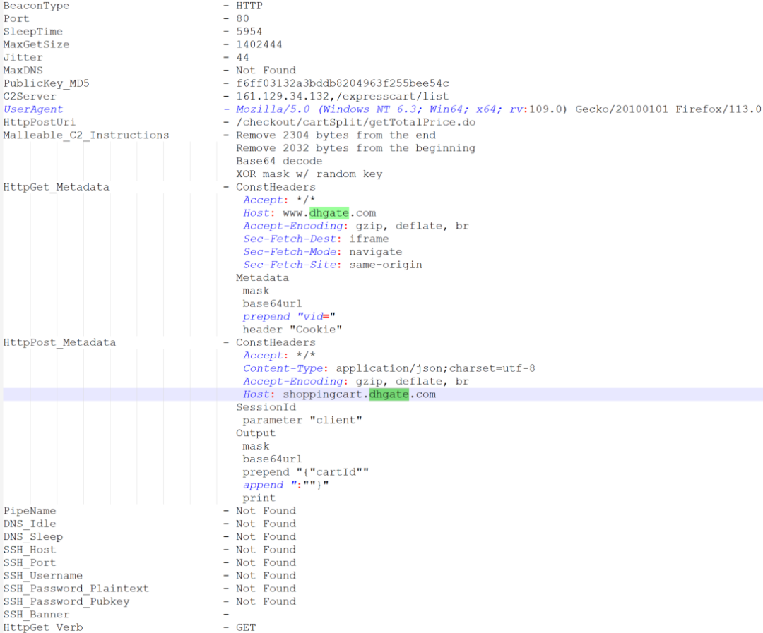 从Metadata元数据中可发现其HTTP Header围绕dhgate相关进行伪造。
