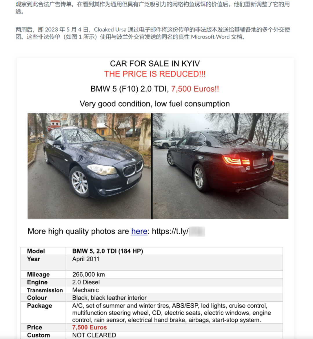 根据公开报告(链接如下),可以得知 APT29 也使用BMW汽车购买相关主题文档攻击过多国外交官。