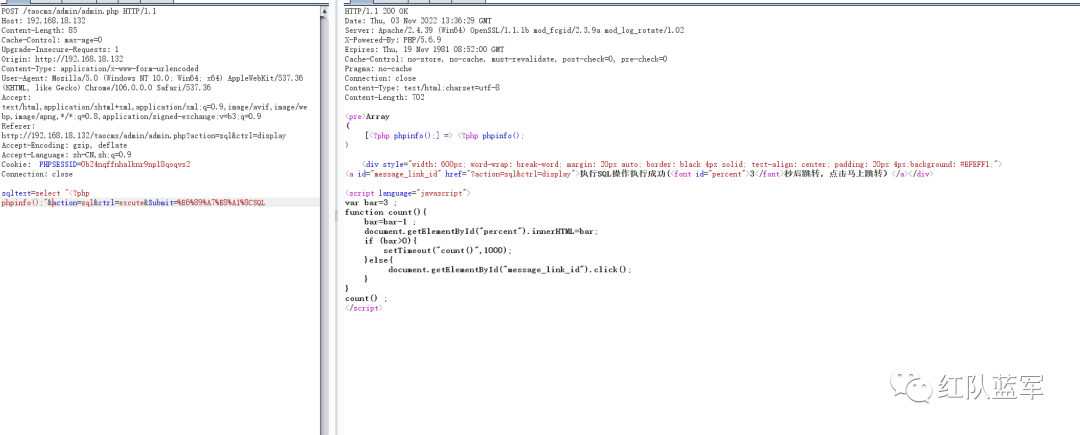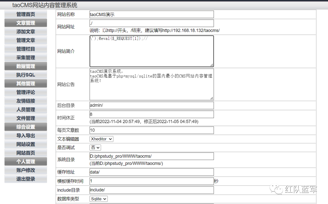 这里思考一下,我们需要怎么getshell呢,第一我们要选择数据库为sqlite,然后提交一下但是这里 站已经炸了,