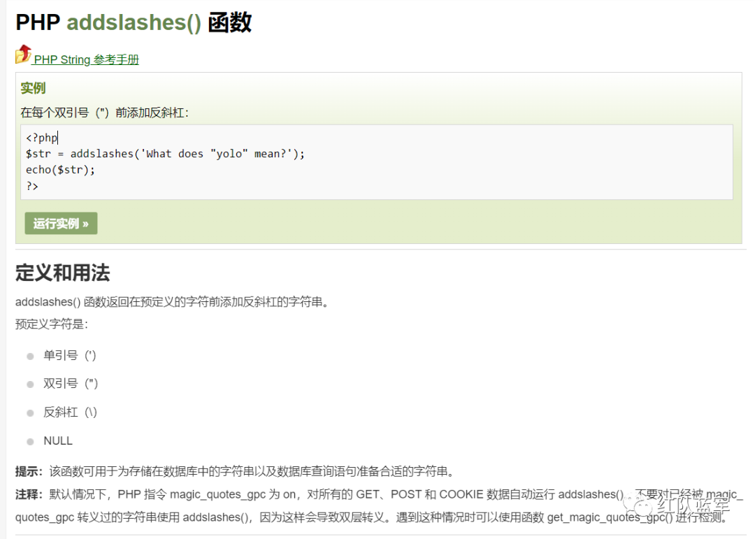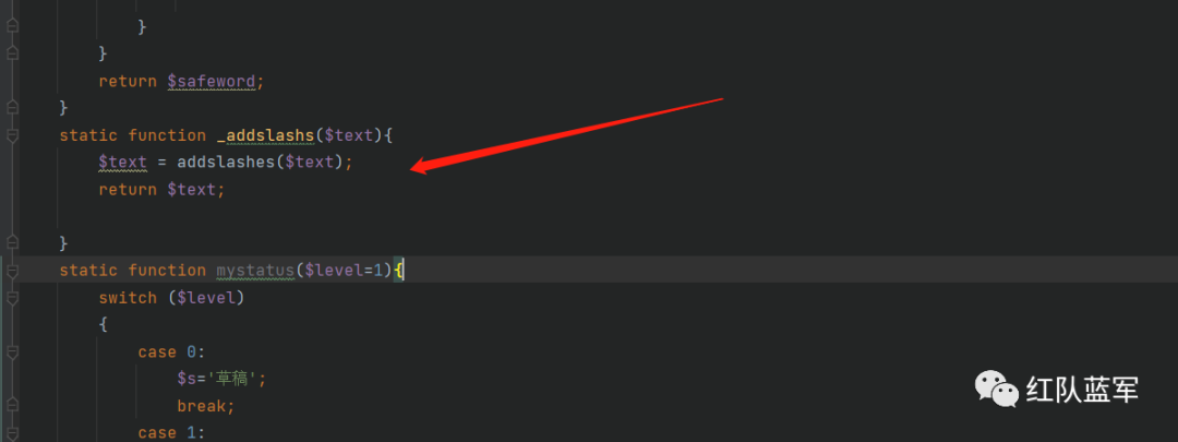 这里我们继续跟进addslashs()函数,很简单就是调用addslashes()函数对输入内容进行过滤,就是 在预定义的字符前面添加反斜杠。