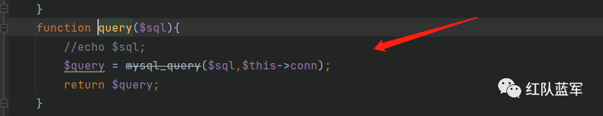 我们在跟一下query()函数,这里跟进去看到直接原汤化原食,也没有任何操作直接mysql_query().