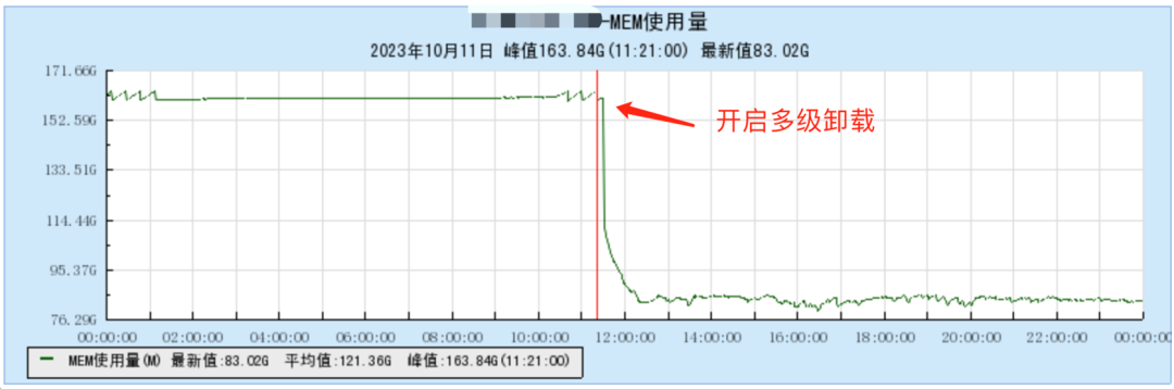 内存节省:提升单机的内存售卖率,降低内存存储的成本。相同数据量情况下,开启多级卸载,内存用量降低35%。