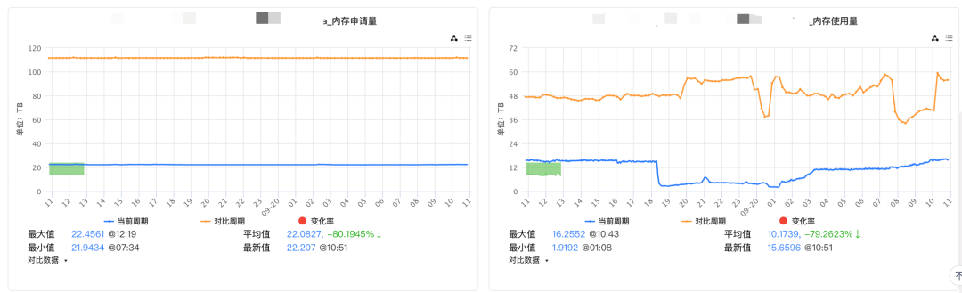 内存节省:对workload开启多级内存卸载,稳定降低内存用量后,降低workload的配置,节省业务上云成本。
