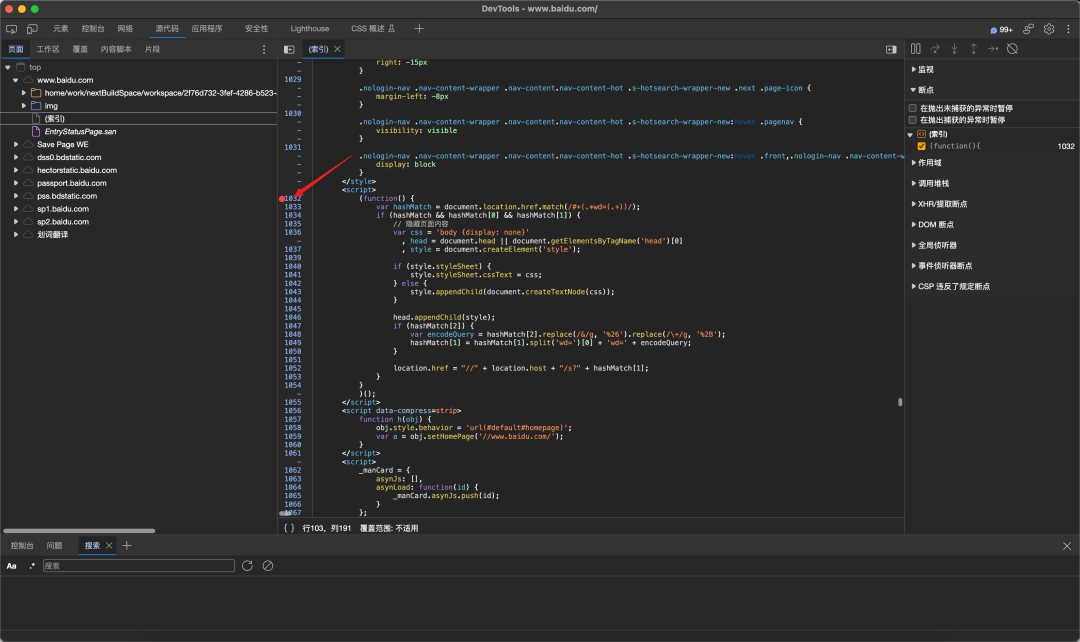 在网络的响应处是无法直接打断点的,我们需要右键在源面板中打开
