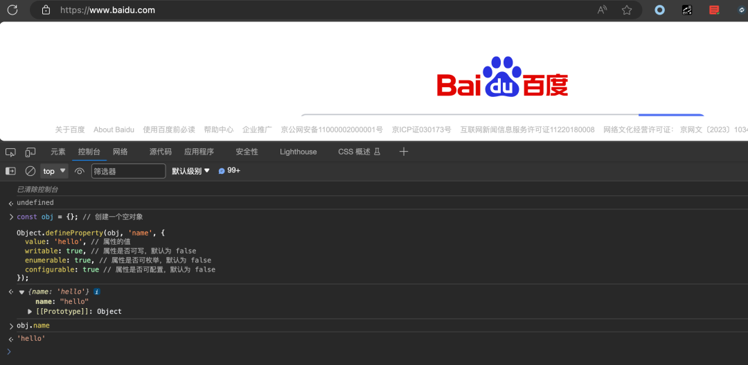 相比于 obj.name='hello',还可以通过 descriptor 变量设置该属性是否可写、可枚举、可配置的描述符