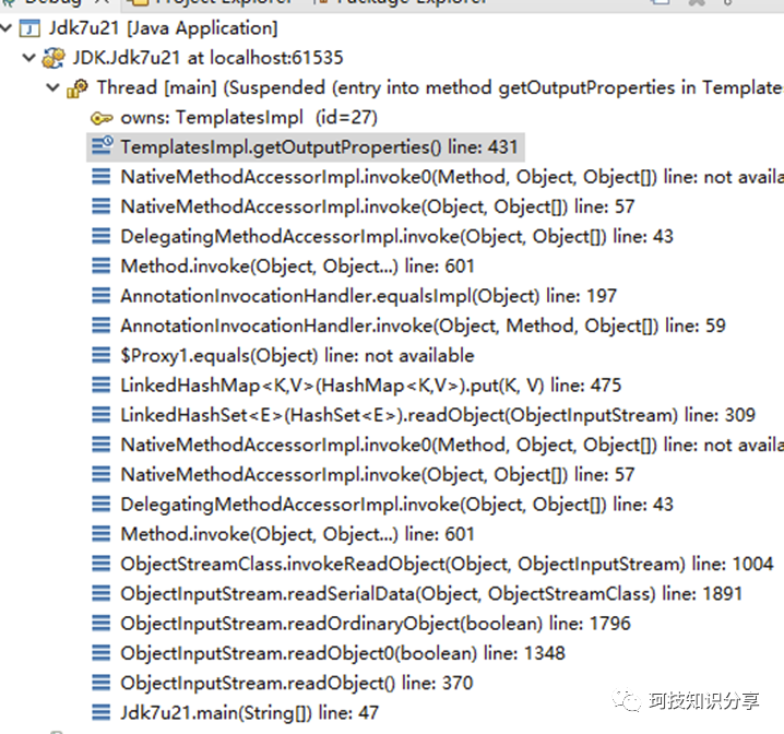 我之前的一篇文章《从CommonsBeanutils说开去》中使用了cb链+getConnection,在jdk7u21中也可以这样用,先回顾下jdk7u21的代码。