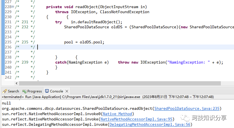bsh.XThis$Handler; class invalid for deserialization也就是说bsh.XThis$Handler不再支持反序列化,因此后续可能需要结合其他getter来利用。由于发现目标用的低版本JDK,因此jdk7u21+getConnection就是一种可能的组合。