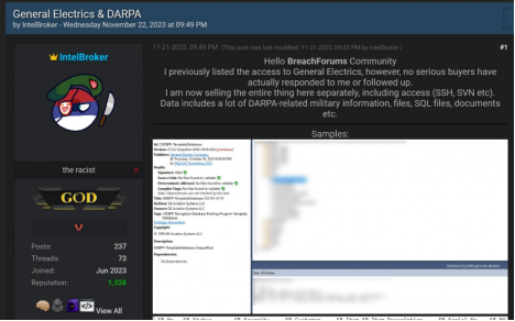 通用电气(GE),一家涉足电力、可再生能源和航空航天等领域的美国跨国公司,近期成为网络攻击目标。据称,威胁组织IntelBroker在黑客论坛上以500美元的价格试图出售对通用电气“开发和软件管道”的访问权限,未成功后又宣称整体出售网络访问权限和据称被窃取的数据。
