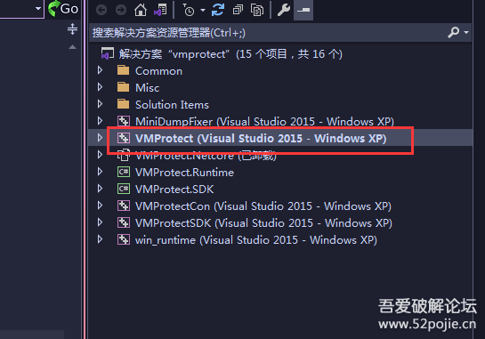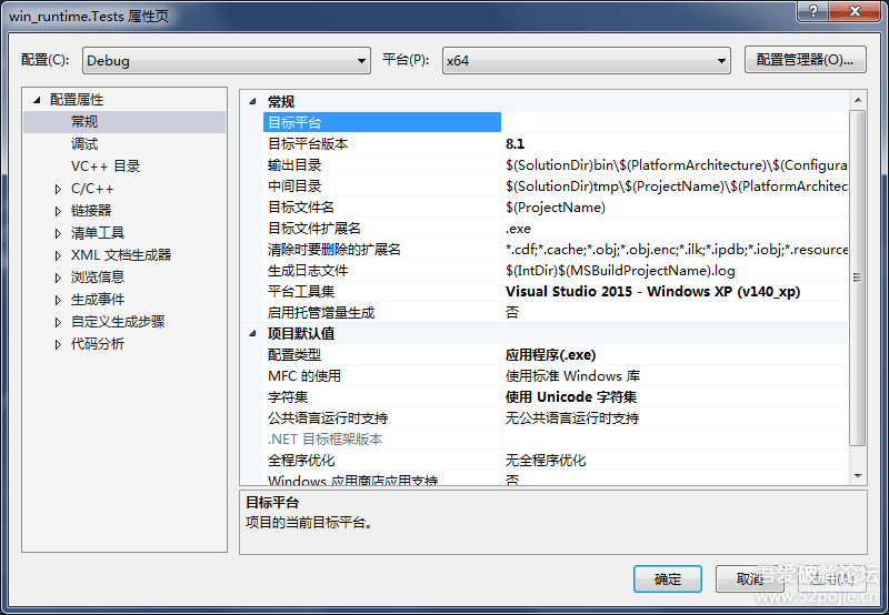 由于初始项⽬默认我打开的时候是显示Visual Studio 2015 - Windows XP (v140_xp) 所以我们最好跟他差不多就⾏了。
