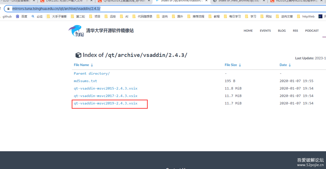 安装5:vs的QT插件:因为我的是vs2019,新版的vsaddin支持不好我选择qt-vsaddin-msvc2019-2.4.3.vsix