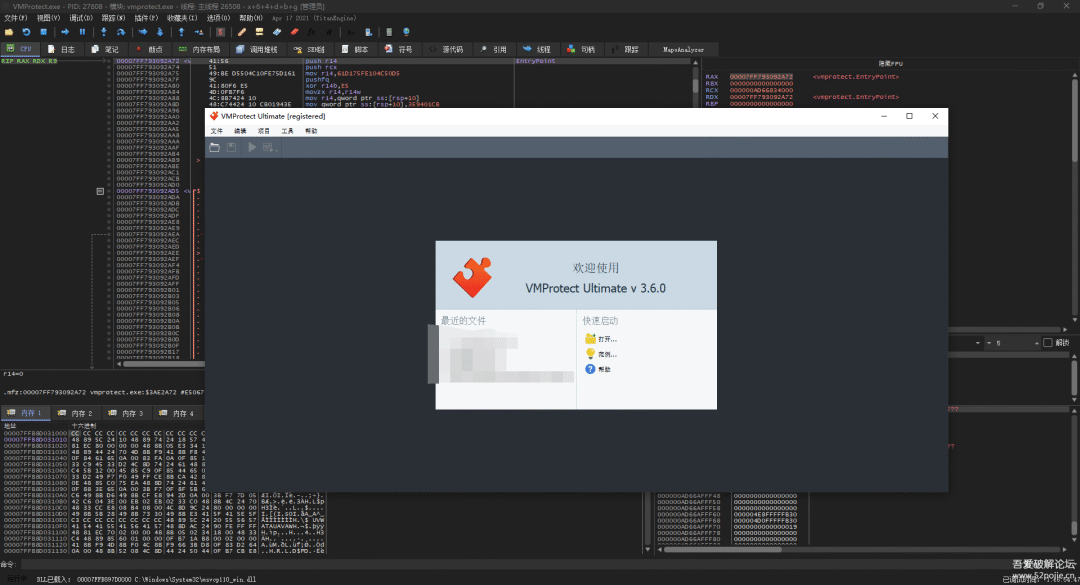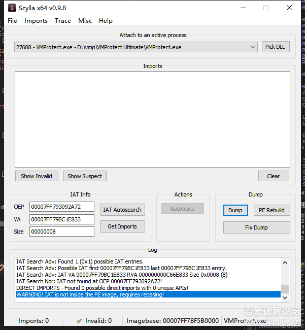 使用自带的 Scylla 把 VMP 主程序 dump 出来
