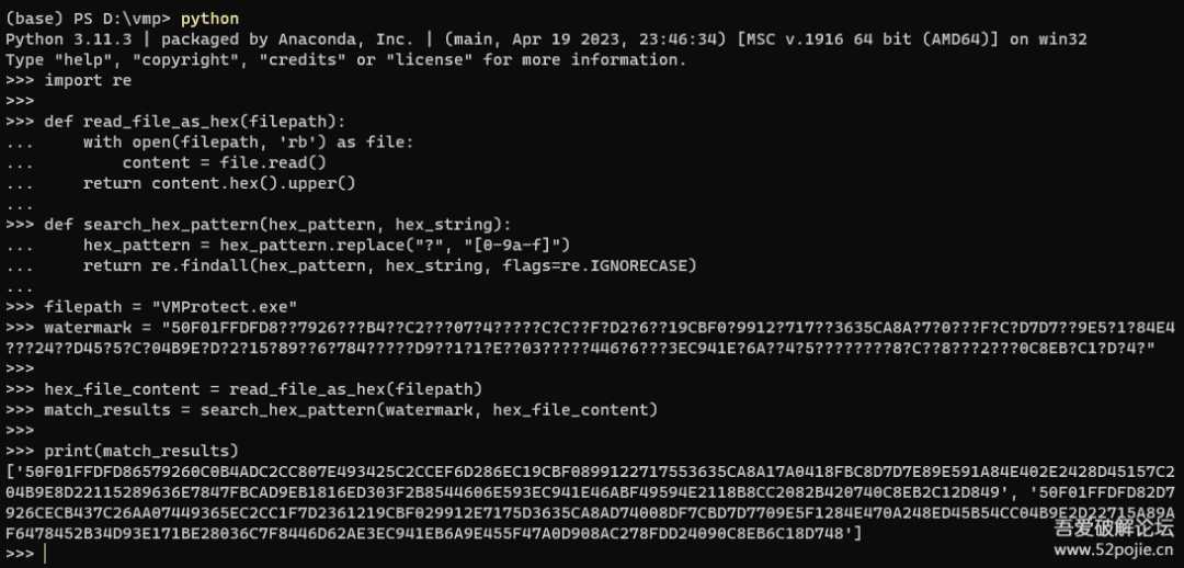 return re.findall(hex_pattern, hex_string, flags=re.IGNORECASE)filepath = "VMProtect.exe"