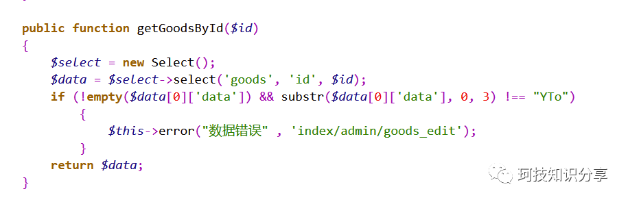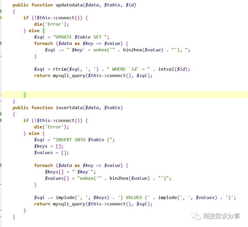 可以发现是自己封装的SQL语句,而且是拼接的,虽然$value经过了hex无法逃逸没什么问题,但$key是裸的。不过在getGoodsById()中,$key固定为id,无法利用。