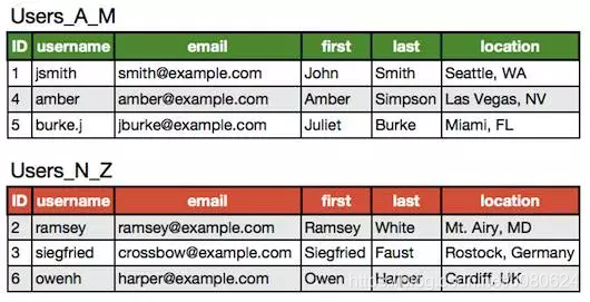 前面垂直拆分的用户表如果进行水平拆分,结果是: