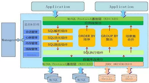 通过独立的中间件来统一管理所有数据源和数据分片整合,后端数据库集群对前端应用程序透明,需要独立部署和运维代理组件。