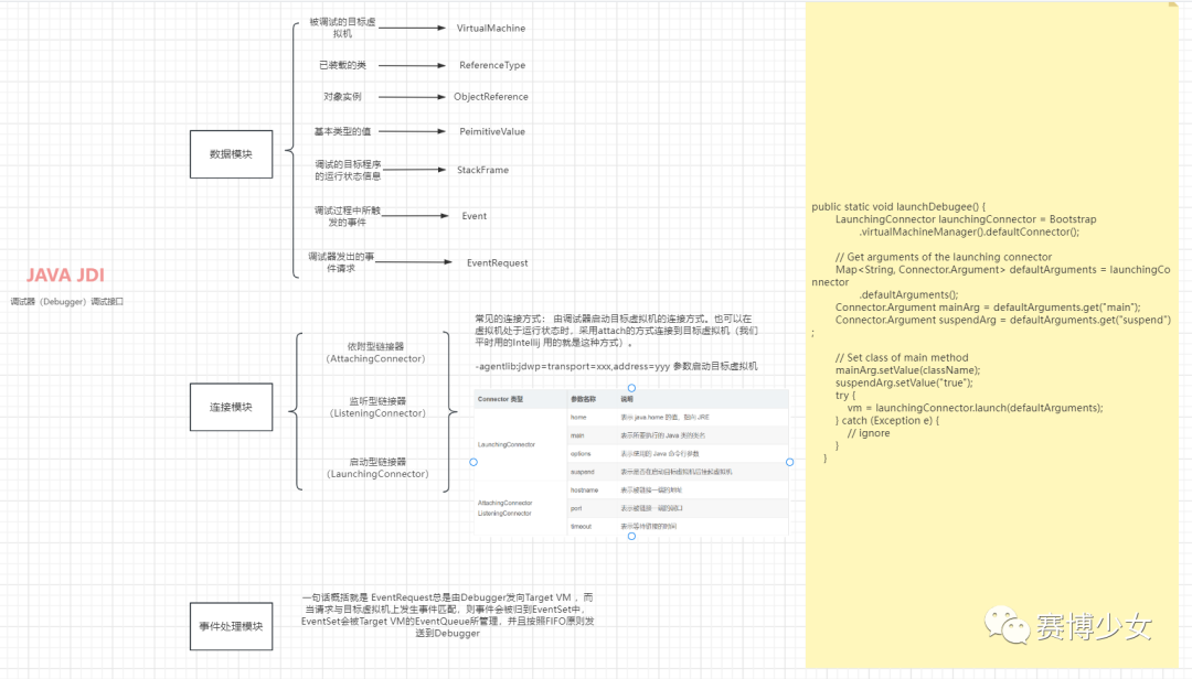 通过上面的描述,我们可以将jdi分成3部分:数据模块、连接模块、事件处理模块。