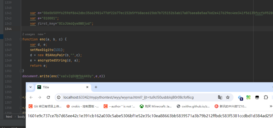 这里我引用了js实现RSA的库,对随机数进行加密,然后我们放开断点看看我们算的和网站的是否一致。