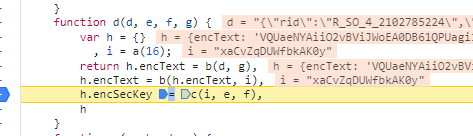 上面是d方法的入参,可以看到d实际是就是明文,e是RSA的公钥指数e,是公钥,g是AES的密钥。