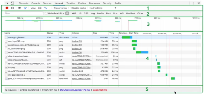 Controls(控制器):使用这些选项可以控制Network 面板的外观和功能。