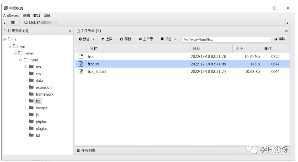 客户端通过WebShell上传,frps上传到自己的公网服务器上,配置frps.ini: