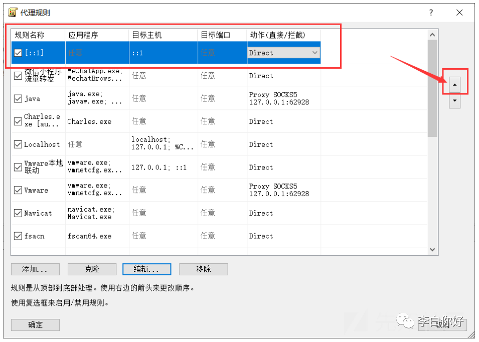 通过右边的按钮,将这条规则调整到第一行(优先执行)