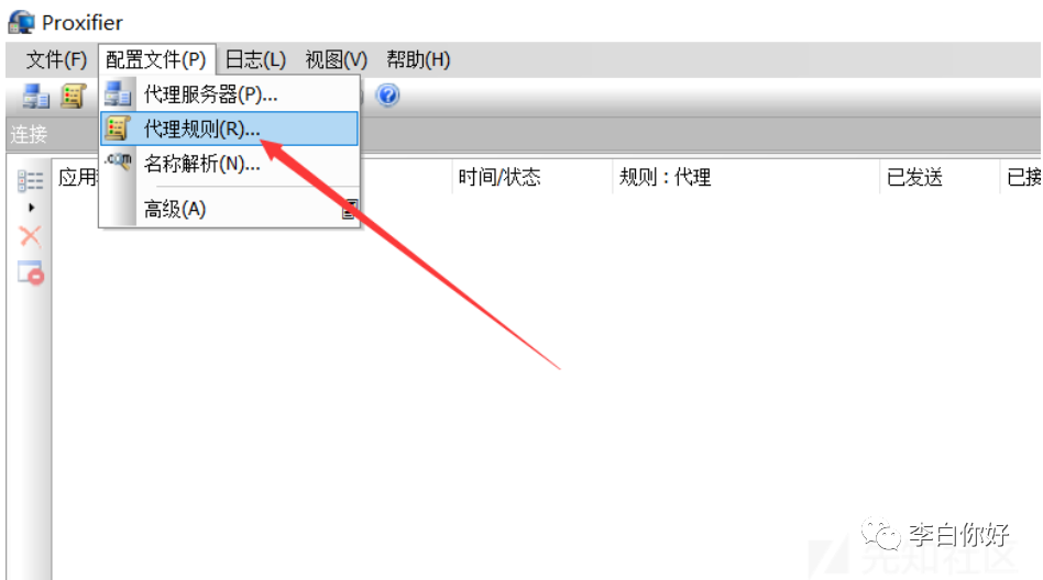 点击菜单栏“配置文件”中的“代理规则”