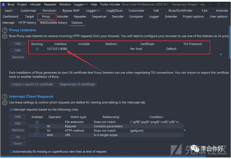 注:这里Burp中 Proxy 的 Intercept 要选择将流量放行