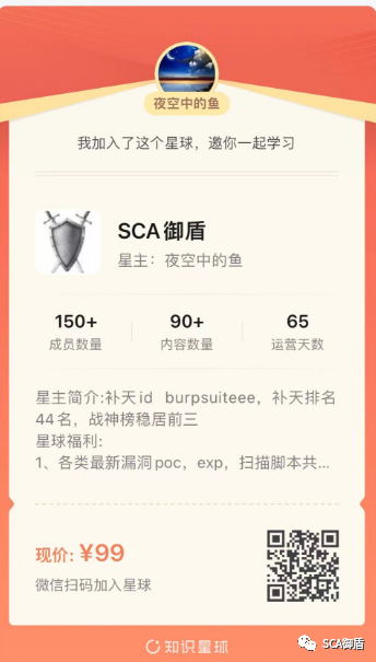 (3)转发任意一篇SCA御盾的公众号至5个50人以上安全群,在公众号加微信后凭截图发放8折优惠券